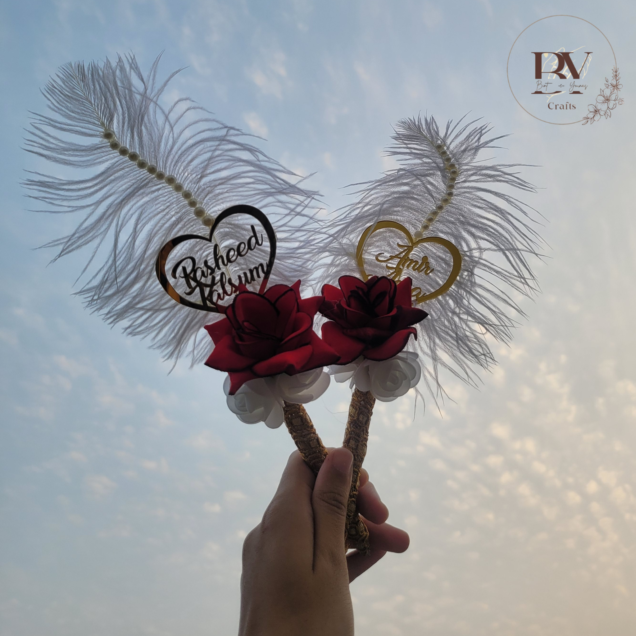 Add a touch of luxury to your Nikkah ceremony with our handcrafted Personalized Pen Set. Designed with Red roses, delicate feathers, and sparkling embellishments, these pens are more than just stationery—they’re keepsakes of your sacred moment. Each pen can be customized with the couple’s names, making it a meaningful accessory for your wedding day and a cherished reminder of the vows you made.