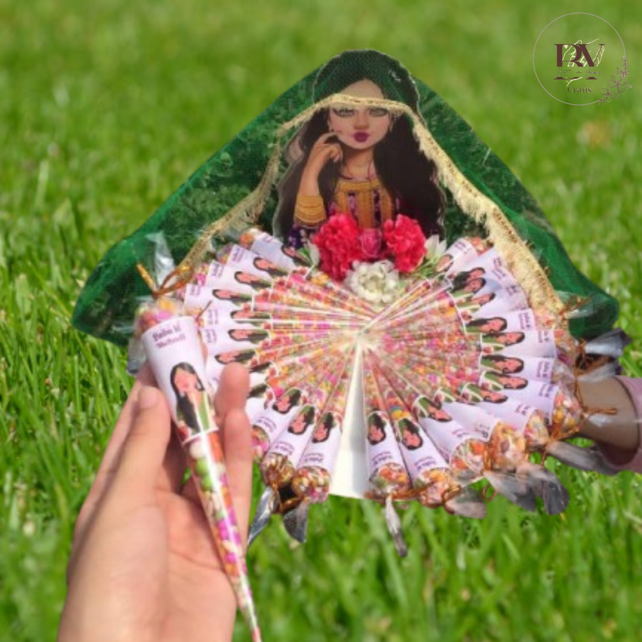 Make your event unforgettable with our Customized Sweet Cones, filled with colorful sonf (sweet fennel) for a refreshing and traditional treat. Each cone comes with a personalized sticker, making it a thoughtful and stylish return gift for your guests.
